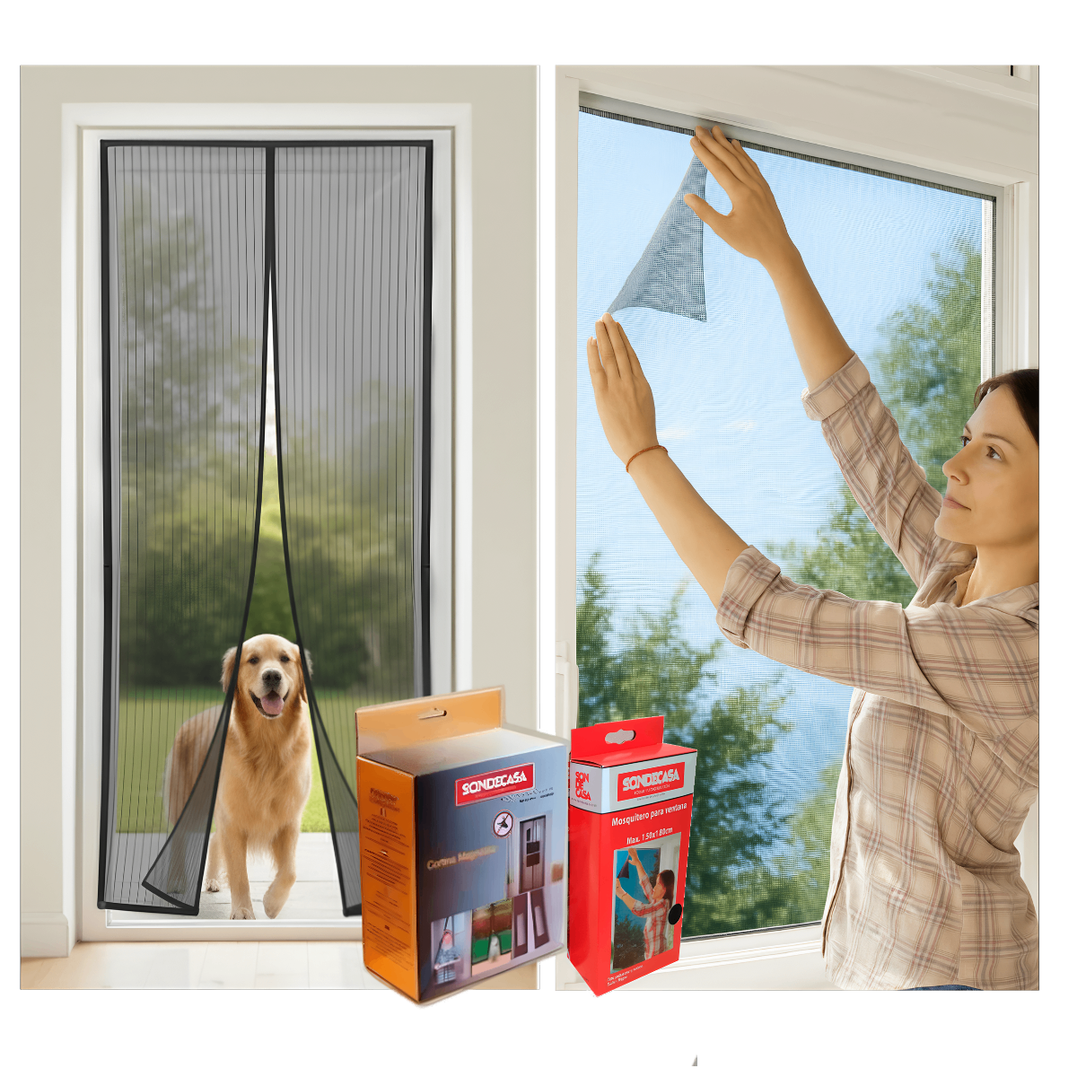 Pack 1 Mosquitero Cortina Magnética Sondecasa + 1 Mosquitero Autoadhesivo Sondecasa