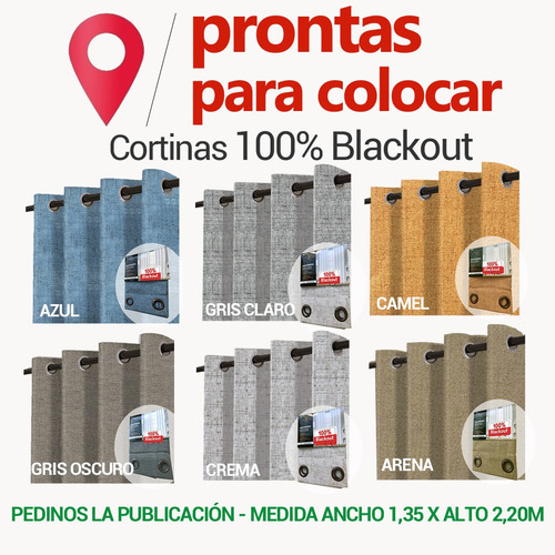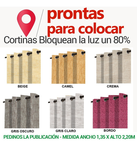 Cortinas 100% Blackout Tela Rustica 1,35×2,20m Varios Colores Sondecasa